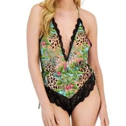 INC International Concepts Lace Chiffon Floral Lingerie Bodysuit