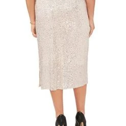 Vince Camuto Plus Size Side-Slit Pull-On Sequin Skirt