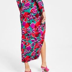 Bar III Women’s Floral-Print High-Slit Pull-On Midi Skirt, Created For Macy’s