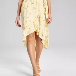 An essential piece that works for every season, And Now This’ flowy midi skirt is trimmed with ruffles at the breezy high-low hem.