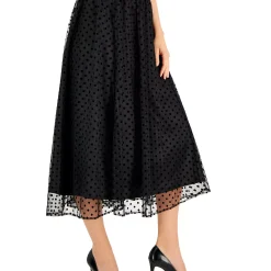 A gauzy mesh overlay features flocked dots for just the right amount of whimsy on this flowy midi skirt from Anne Klein.