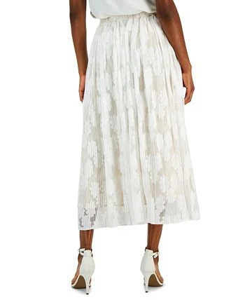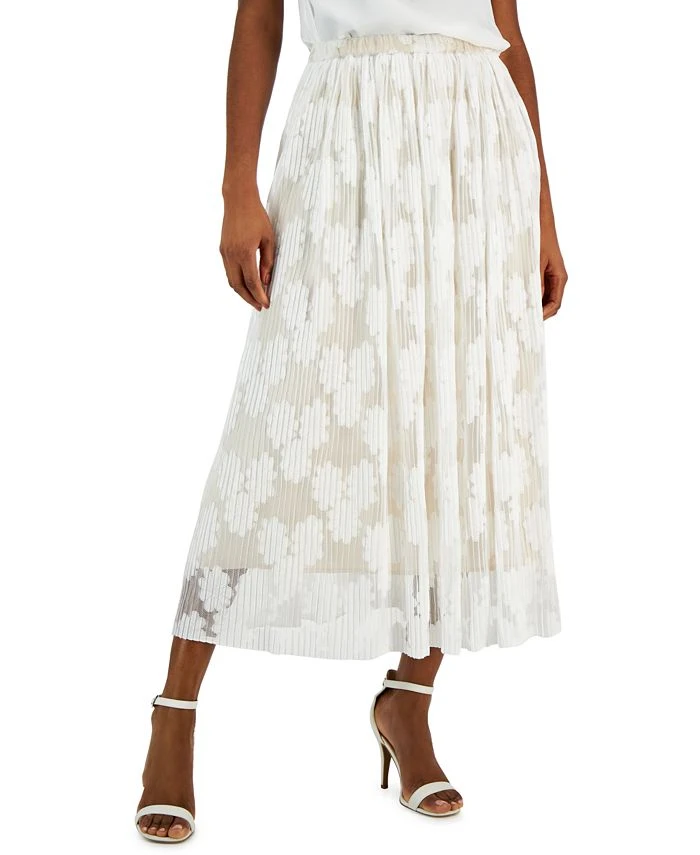 Floral and feminine, this Anne Klein skirt is a comfortable midi length pull-on style with a mesh floral overlay.