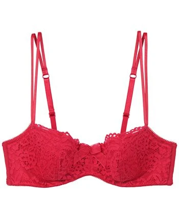 Say ciao to a dramatic neckline and lace overlay, tied together with an oversized sheer bow accent. Perfect under square-neck tops, this balconette underwire bra is subtly sweet and sexy.