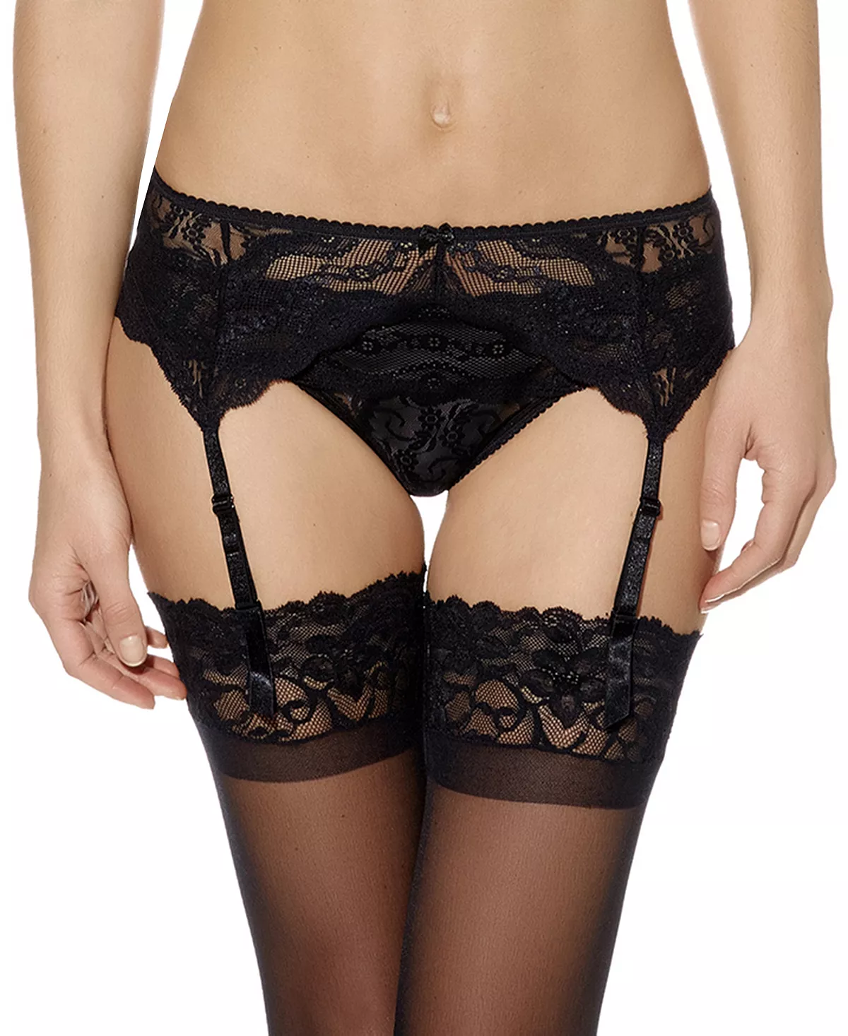 If you don’t have one, you know you want one. Featuring 360 degrees of allover stretch lace, adjustable metal hardware and ribbon flashes, this garter is guaranteed to turn any peck on the cheek into a passionate smooch session