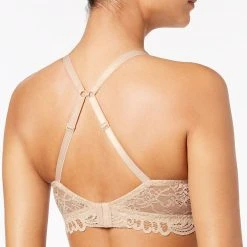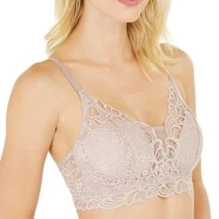 - Lightly padded, wireless cups with a lace overlay