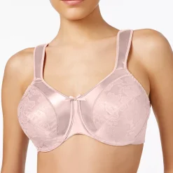 Bali’s Satin Tracings Minimizer bra offers comfortable slimming support while looking beautiful with its floral print and satin accents. It helps you achieve the shape you desire and minimizes as much as 1-3/4″ without flattening the bust.