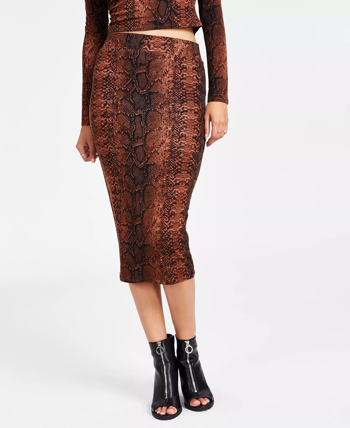 Bar III’s midi skirt is fashioned from sleek jersey for an endless comfy fit that hugs all your curves.