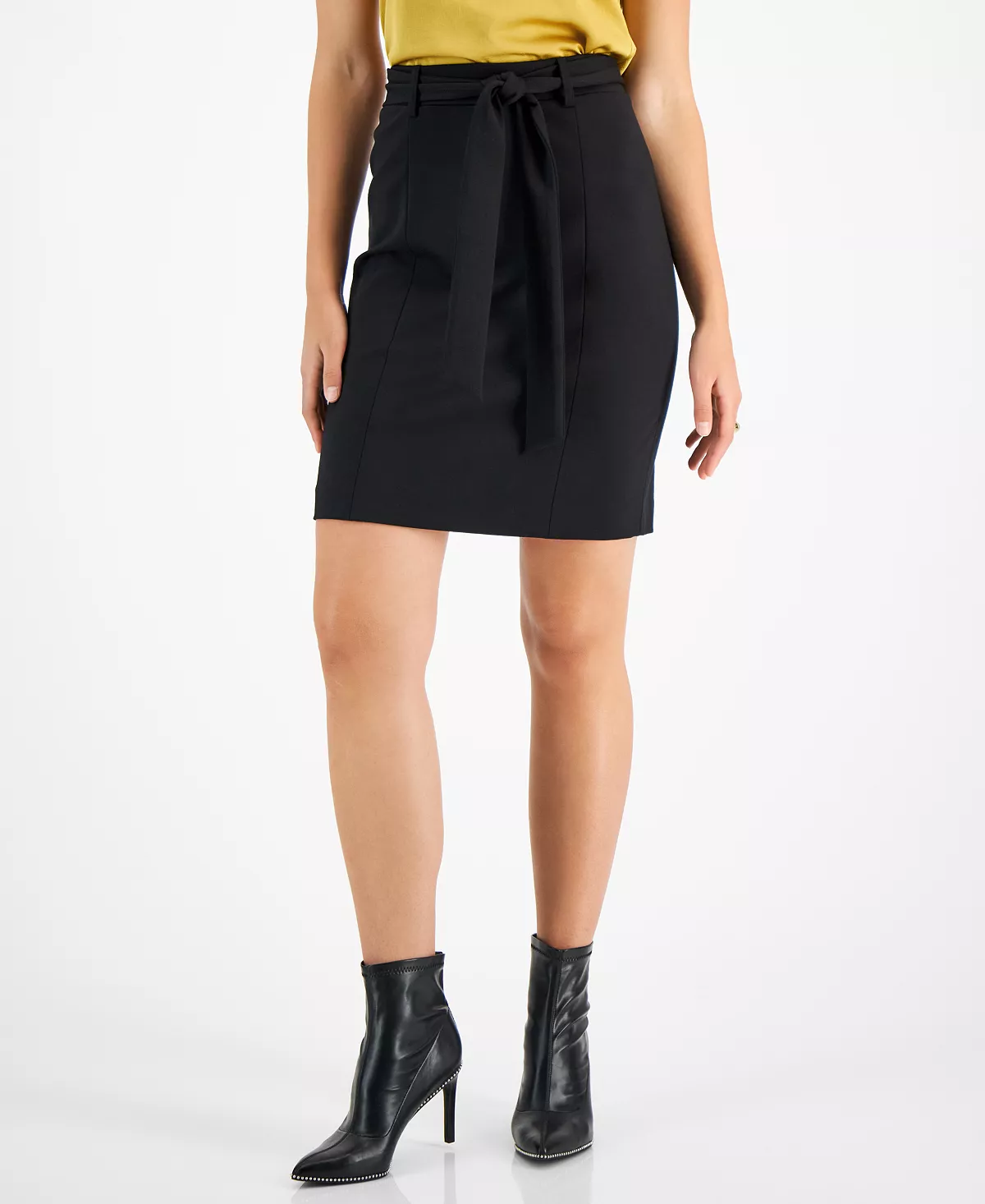 Get on point career style with Bar III’s belted pencil skirt.