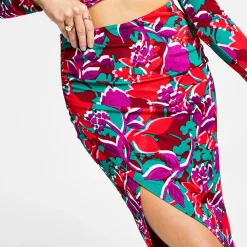 Let those vacation vibes flow anywhere you go in this dramatic printed high-slit midi skirt from Bar III.