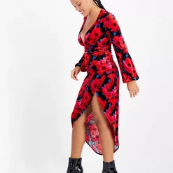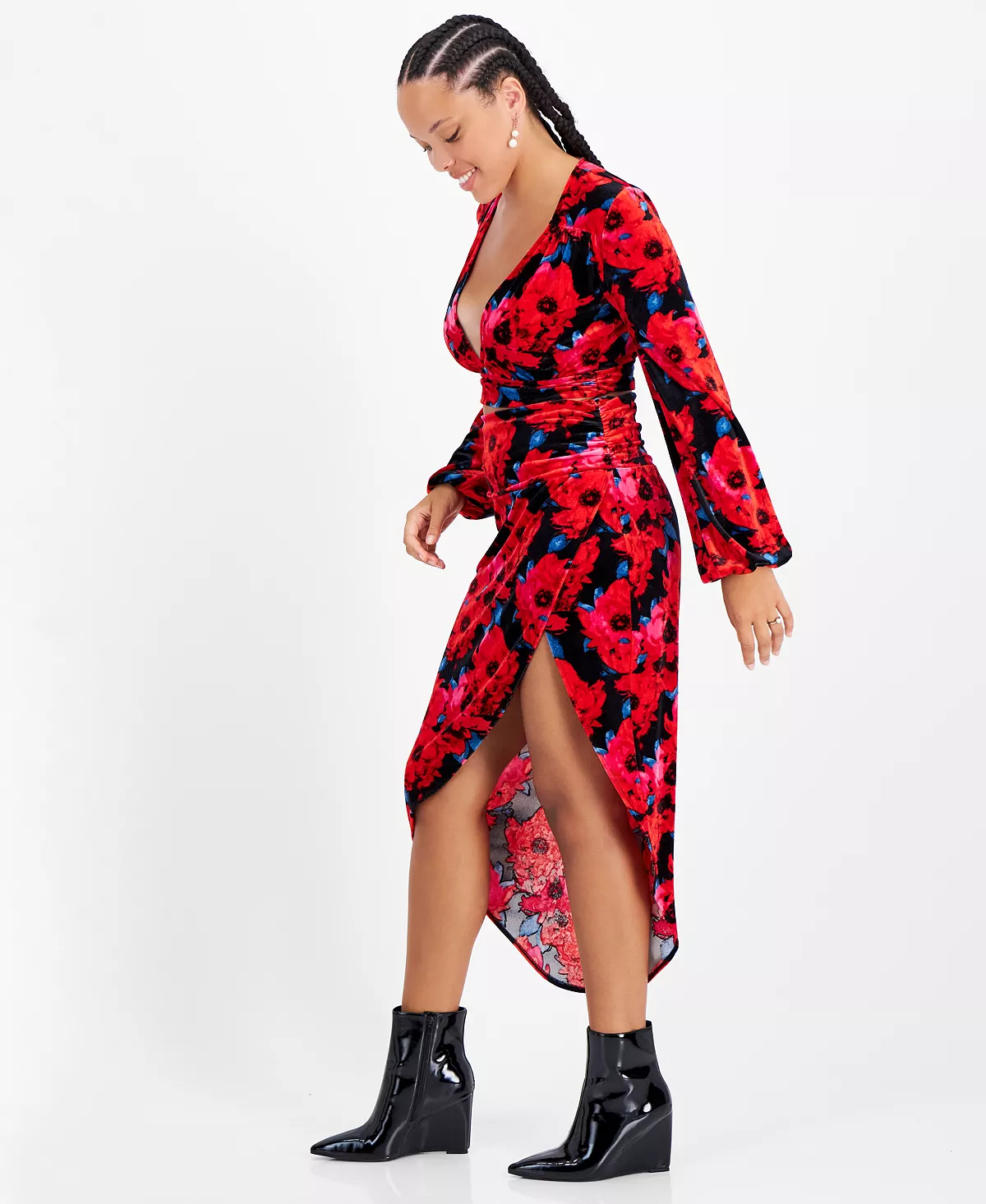 Bold prints and an extended slit at front are the stars of this midi velvet skirt from Bar III.