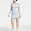- Ruched detailing at side; slit at front