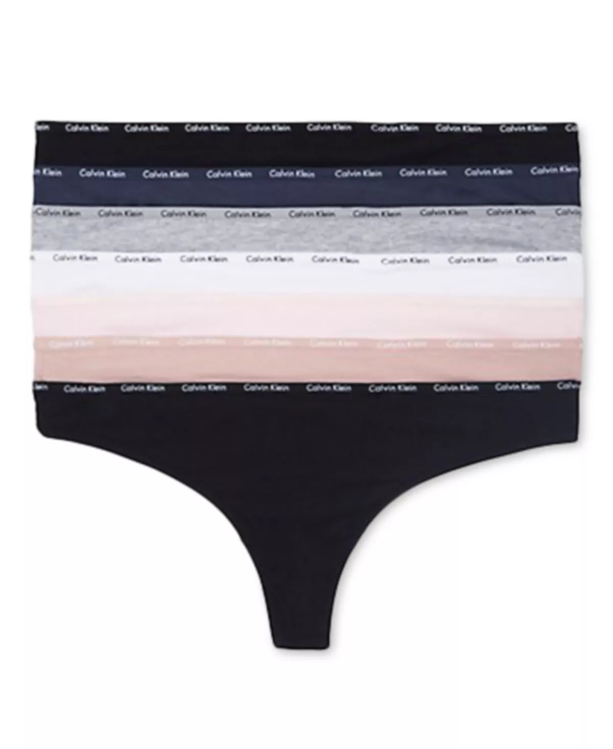 Crafted from a signature cotton stretch blend, these iconic Calvin Klein thongs come in a 7-pack with a repeating logo elasticated waistband, a full gusset, minimal rear coverage and seaming details.