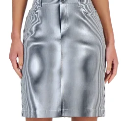 A fun look with timeless flair, this Charter Club denim skirt features classic stripes and tummy control for a sleek fit.