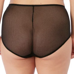 - Cotton lined diamond mesh front with embroidered side panels and diamond stretch lace leg panels