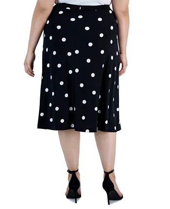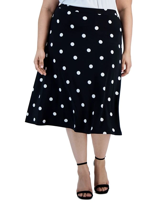 Kasper Plus Size Polka Dot-Print Midi Flared-Hem Skirt