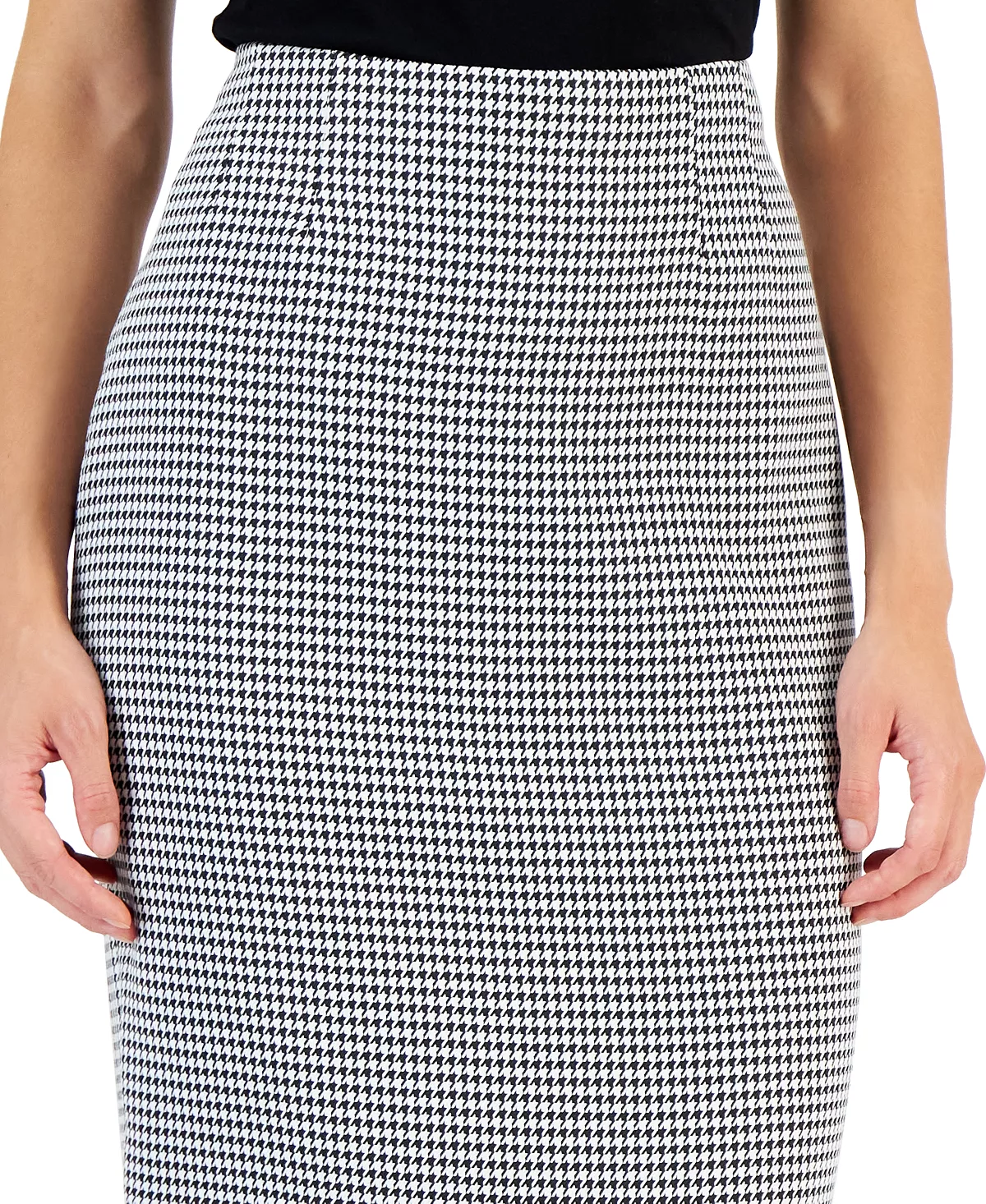 A modern pencil-slim spin on classic houndstooth, with a smidge of stretch, this Kasper skirt is a smart addition to your workday rotation.
