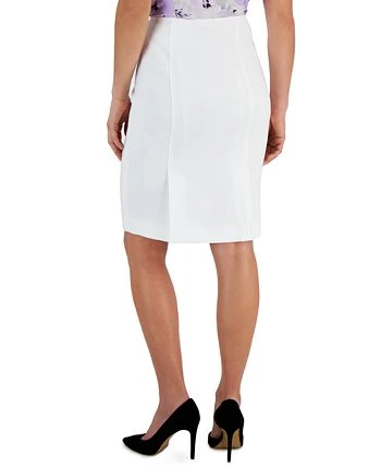 A subtle tone-on-tone jacquard fabric enhances the clean-lined design of Kasper’s pencil skirt.