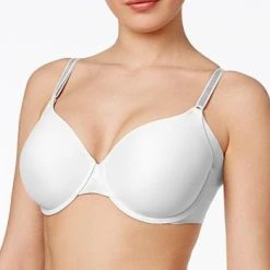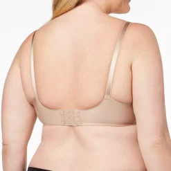 This smoothing t-shirt bra is perfect for those form-fitting tops and dresses. Olga’s No Side Effects Contour Bra features front-adjustable straps, extra side coverage and eliminates underarm bulge. Style #GB0561A