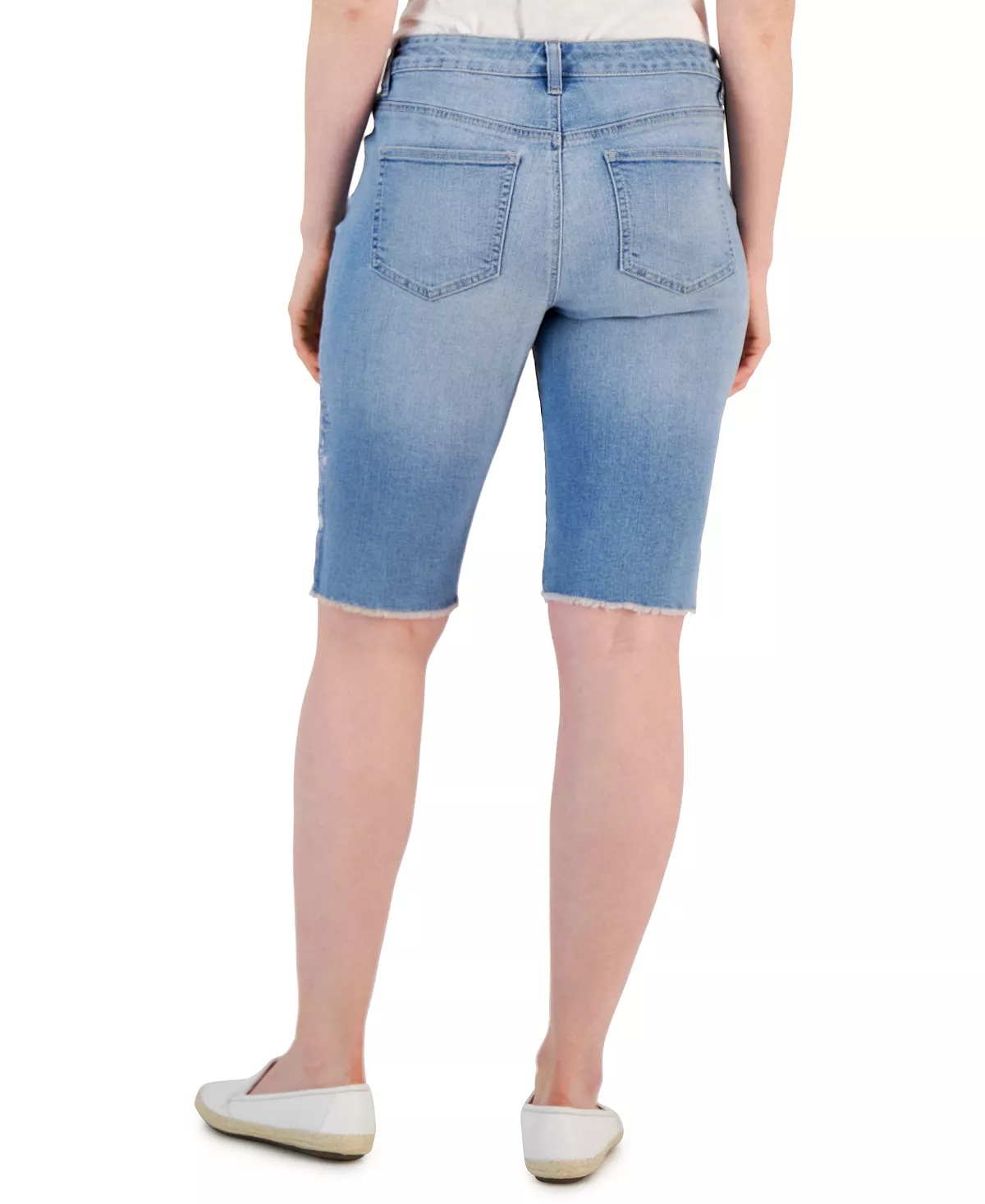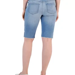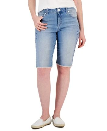 Soft stretch denim and a slimming panel brings a sleek fit to these Style & Co Bermuda shorts. Fading and raw hems give you a lived-in look.