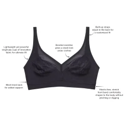 - Special Features: Bonded neckline gives a sleek look under clothes; elastic-free, stretch front band comfortably shapes to the body without pinching or digging; mesh-lined back for added support